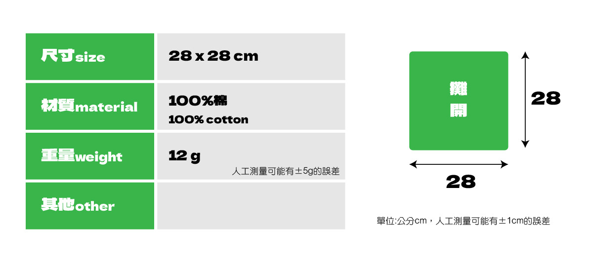 28 x 28 cm ± 1 cm(人工測量約有0.5~1公分誤差)