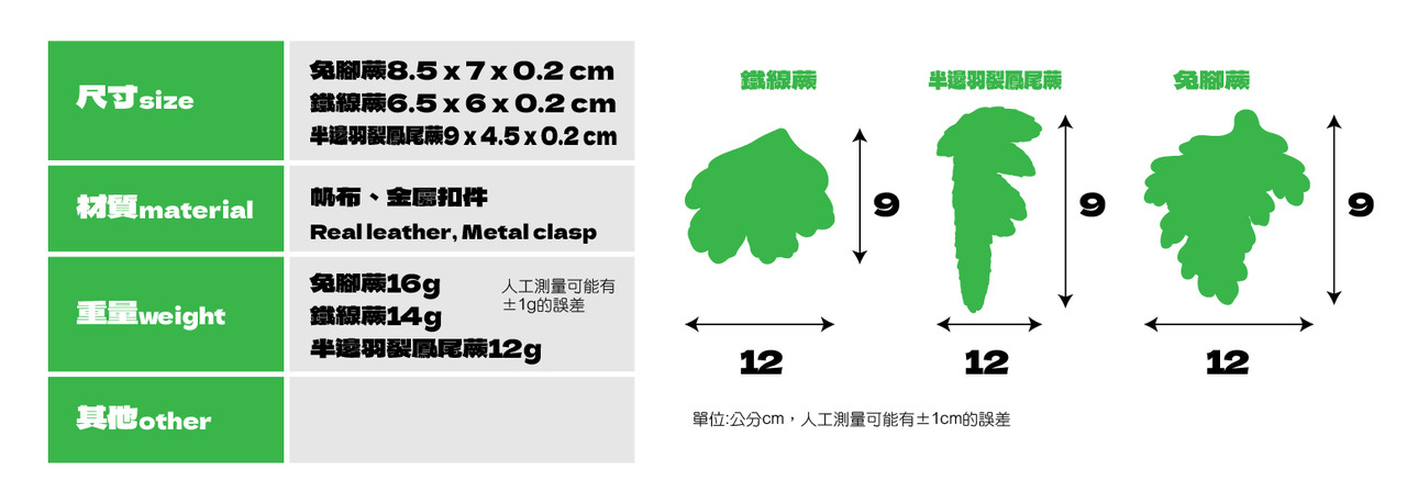 •半邊羽裂鳳尾蕨: H90 x W45 x D2 mm
