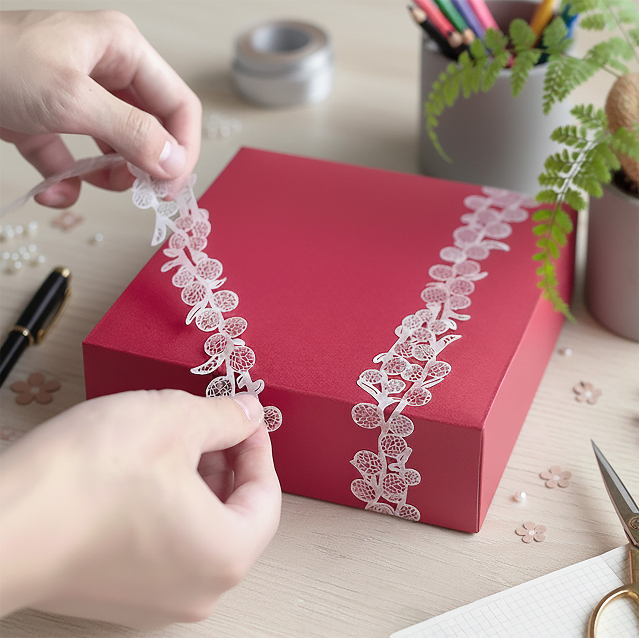 以蕨類優雅的葉影為靈感,設計出獨特的鏤空膠帶。透過細緻的剪影效果,讓光影自由穿透,為日常裝飾增添層次與自然之美。無論是手帳、禮品包裝或手作創意,都能帶來詩意與清新的氛圍。